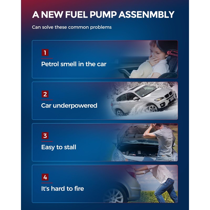 - FUNCTIONS: Suck the fuel from the fuel tank, pressurize it and then deliver it to the fuel supply pipe, and cooperate with the fuel pressure regulator to establish a certain fuel pressure. Guaranteed supply of continuous fuel to the injector
