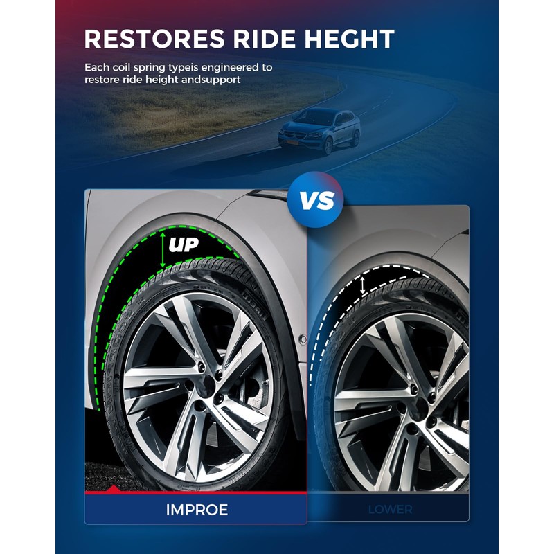 - Improve Performance - Front shocks provide essential structural support to the vehicle’s suspension, helping to restore body height and prevent grounding. This enhancement improves driving maneuverability by up to 50%.
