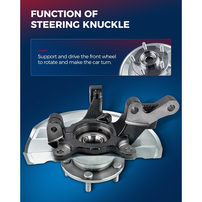 - 【Specification】 Installation Position: Front Driver Side; Condition: Brand New; Material: Steel; Loaded Knuckle Included: Yes; Hub Included: Yes; Bearing Included: Yes; Axle Included: No.