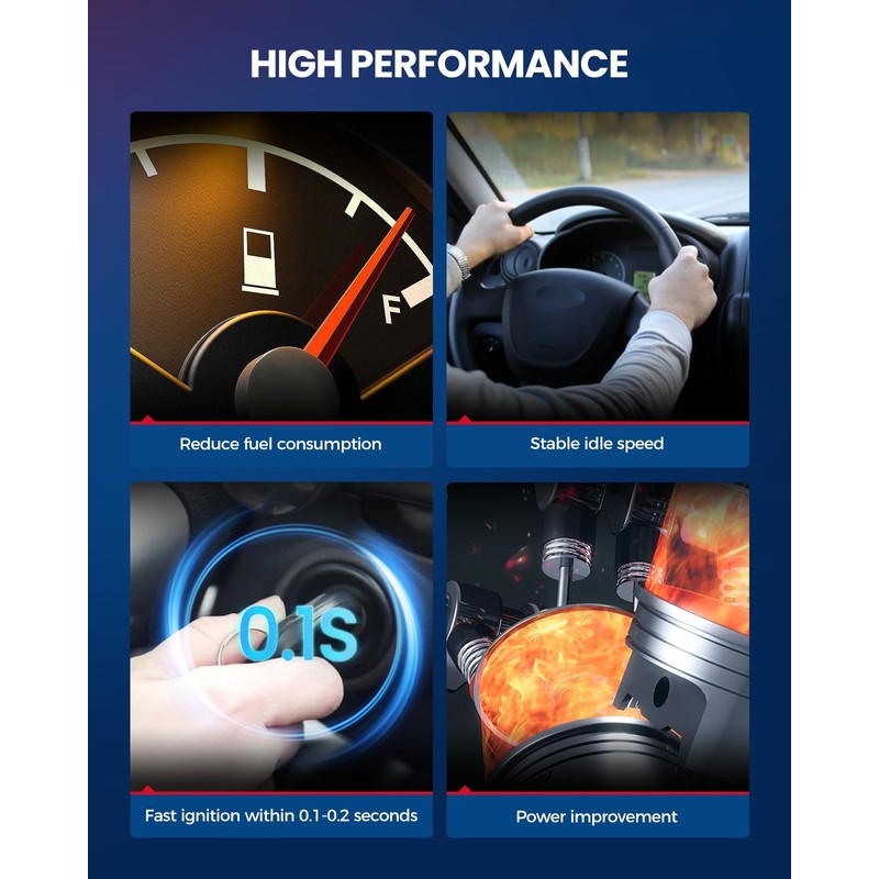 • Efficient work:Automotive replacement ignition coil | Fast ignition within 0.1-0.2 seconds | 140  C high temperature corrosion resistance | RF interference protection | 6500Mi longer lifespan | High voltage output | Smooth engine operation.