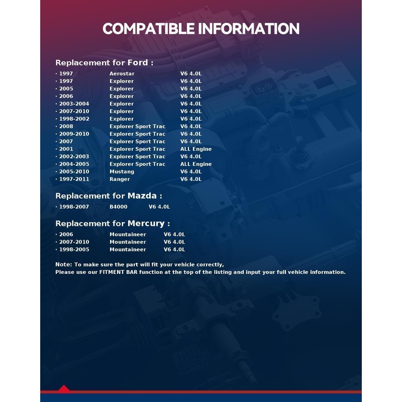 - Compatible Vehicle: KAX NEW Starter Motor compatible With 1997-2010 Explorer 4.0L, 1997-2011 Ranger 4.0L, 2005-2010 Mustang 4.0L, 2002-2003 2007-2010 Explorer Sport Trac 4.0L, 2001 2004-2005 Explorer Sport Trac, 1998-2010 Mountaineer 4.0L, 1998-2007 B4000 4.0L, 1997 Aerostar 4.0L