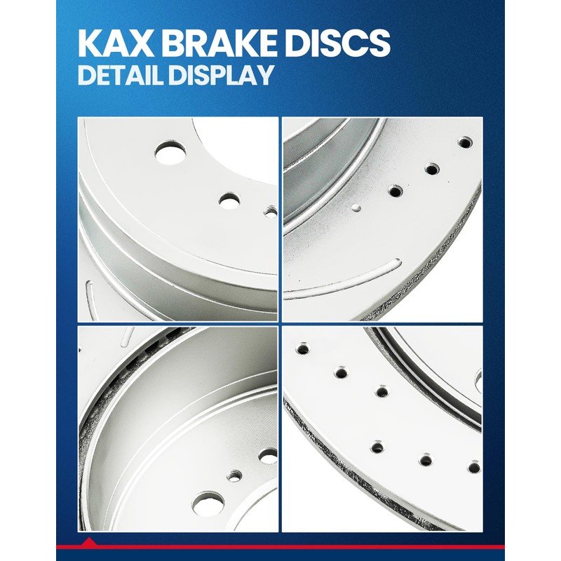 • Precise Vehicle Compatibility: KAX vented Brake Disc Rotors Designed exclusively rear wheel size 344.9mm(13.58in) for Toyota Tundra 2007-2021, Toyota Sequoia 2008-2022, Lexus LX570 2008-2011 2013-2021. Please confirm model number before purchase.