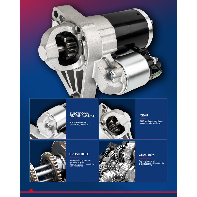 - [High Torque] : Our car starter motor utilizes a high-performance DC motor to ensure reliable starting capability. The motor is equipped with high-quality magnets, ensuring high rotational speed, high torque, and low noise.