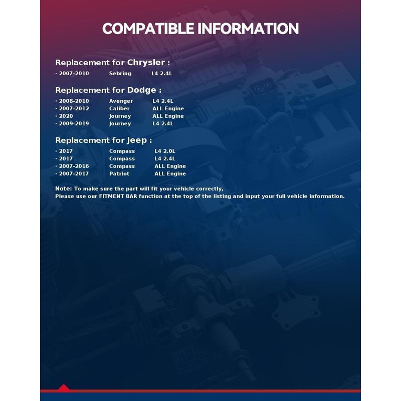 - [Vehicle Compatibility] : This CNC machined starter compatible with 2007-2017 Jeep Patriot, 2007-2016 Jeep Compass, 2009-2019 Dodge Journey 2.4L L4, 2007-2012 Dodge Caliber, 2008-2010 Dodge Avenger 2.4L L4, 2007-2010 Chrysler Sebring 2.4L L4, 2020 Dodge Journey, 2017 Jeep Compass 2.4L L4, 2017 Jeep Compass 2.0L L4.Please confirm whether your model matches this product model.