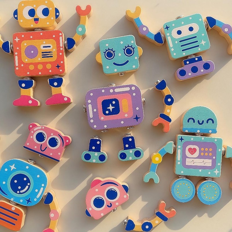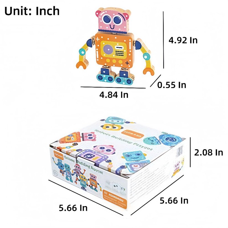 KAXCOT Wooden Robot Building Blocks, Fine Motor Skills, Boys and Girls STEM Disassemblable Toy Sets, Suitable for Children Aged 3 to 8, Creative Building Toys