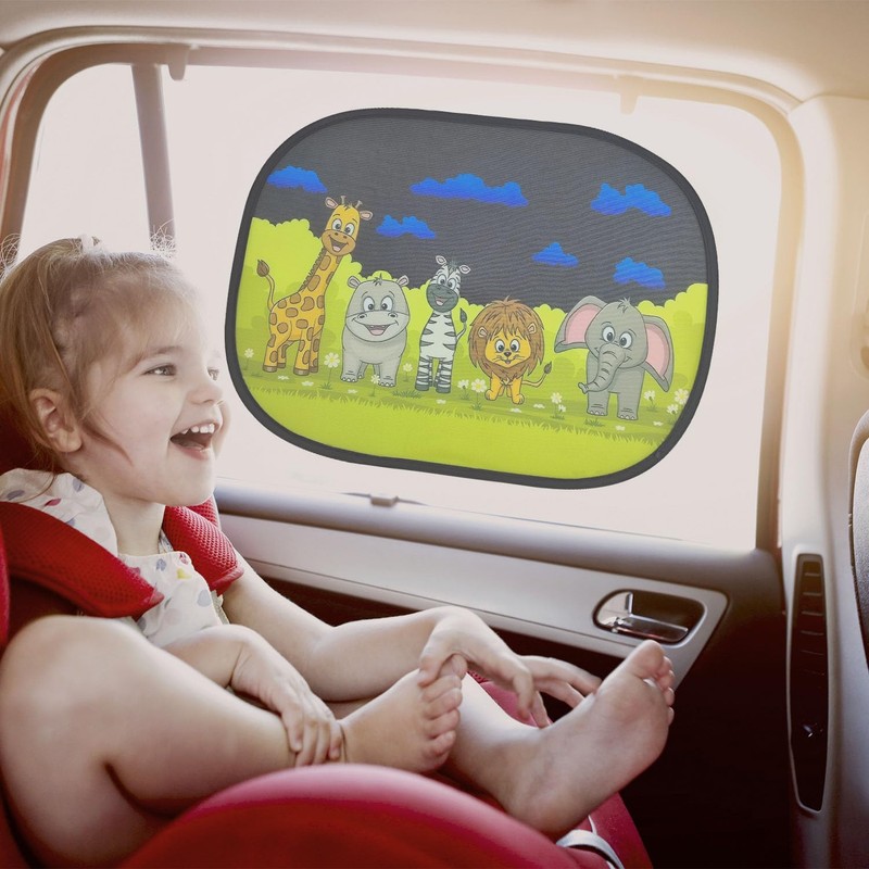 KAY RUK Car Window Shades for Baby (2 Pack), Glare Shield and UV Rays Protection for Your Child - Side Window Screens for SUV- Mesh Window Shades for car Baby (Animals, 440mm*350mm)