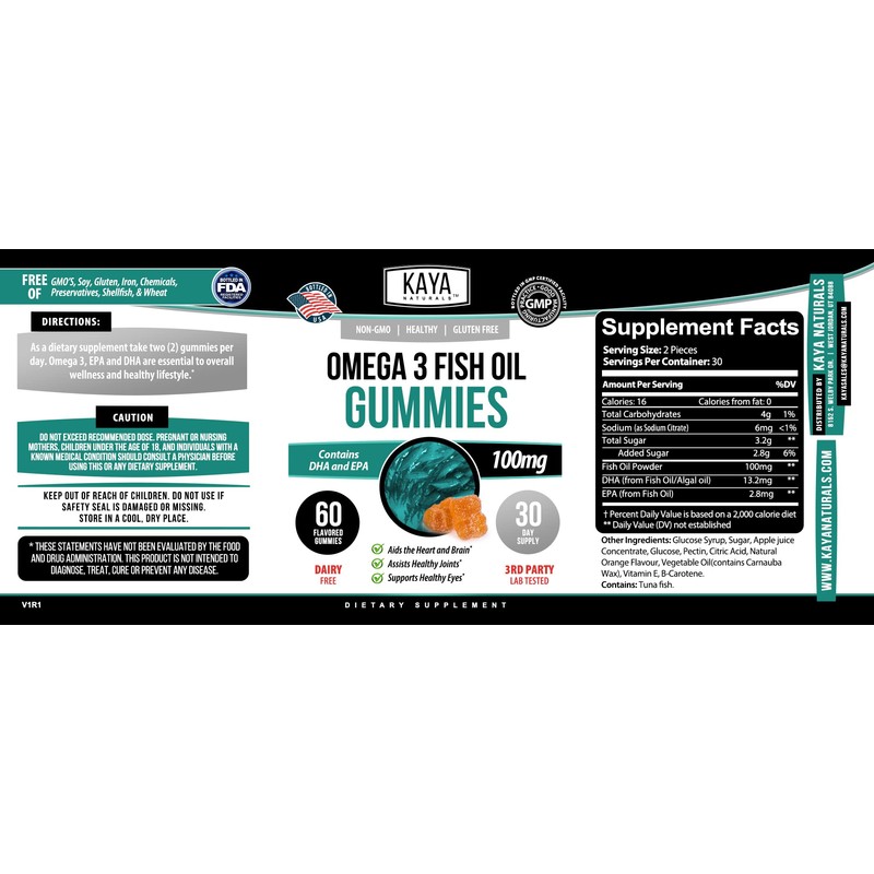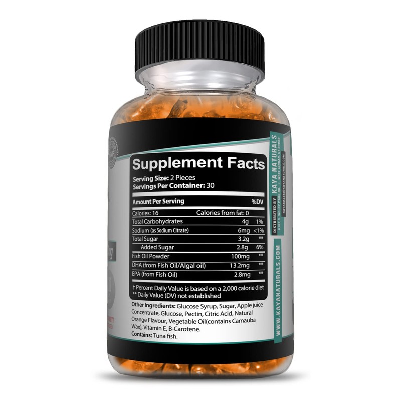 Kaya Naturals Omega 3 Fish Oil Gummies | Best Source of Omega 3 | Fish Oil Supplement with EPA & DHA Fatty Acids | Helps Support Brain, Eye & Joint | Heart Health & Immune Support | Non-GMO - 60 Count
