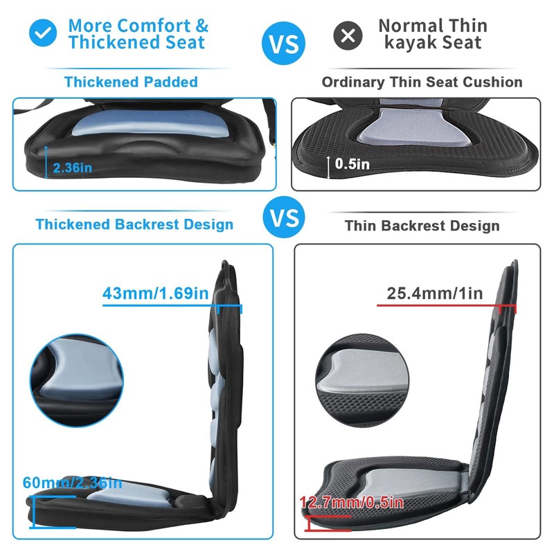- ✔️【Comfortable Design】: Extra thick kayak seat padded foam filled seat offers comfortable, the Contoured padded backrest, anti-slip design to keeps the seat in place while out on the water that support to the paddler to let them enjoy their time spent out on the water