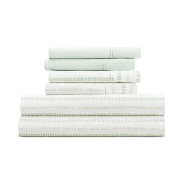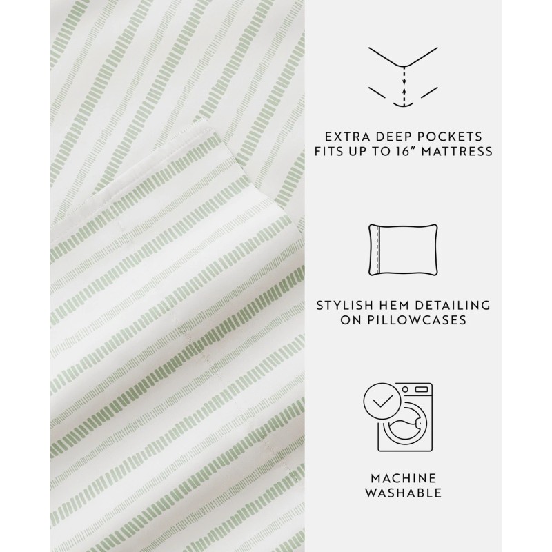Kaycie Gray Microfiber 4 Piece Sheet Set Twin XL Size Green Dashed Stripe