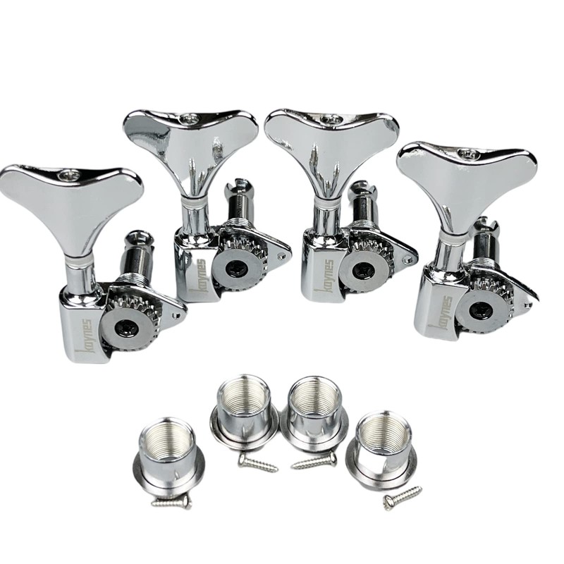 KAYNES 1:24 Ratio Silver Electric Bass Guitar Machine Heads Tuners Guitar Tuning Key Pegs Open Gear Replacement for Jazz Precision (4 for Right, Chrome)