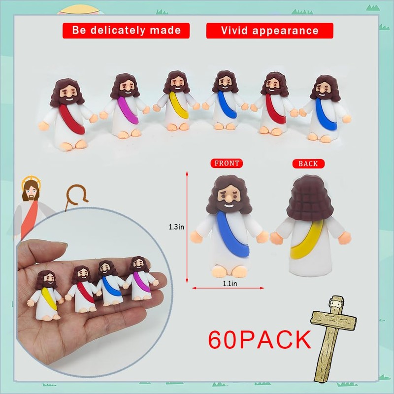 Kayzyue 60 Pcs Little Jesus Figurine Mini Jesus Figures Easter Egg Stuffers for Sunday School,Christ Savior,Hide and Seek Religious Party