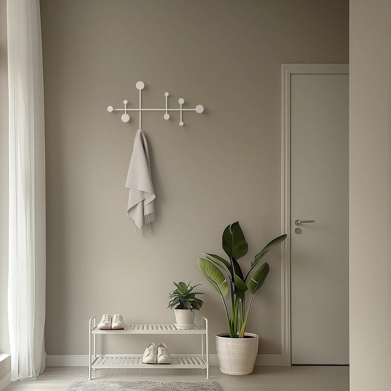 - 𝗠𝗶𝗻𝗶𝗺𝗮𝗹𝗶𝘀𝘁 𝗘𝗹𝗲𝗴𝗮𝗻𝗰𝗲: The "Sval" wall-mounted coat rack brings an artistic touch to any room with its minimalist and harmonious design. The balanced symmetry of the hooks reflects a modern elegance that exudes calm and clarity, making it a standout piece among modern coat hooks