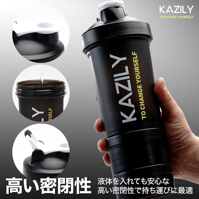 Kazily Protein Shaker Bottle with Shaker Ball Supplement Tray x 2, Large Capacity, 20.3 fl oz (600 ml) (No Brush)