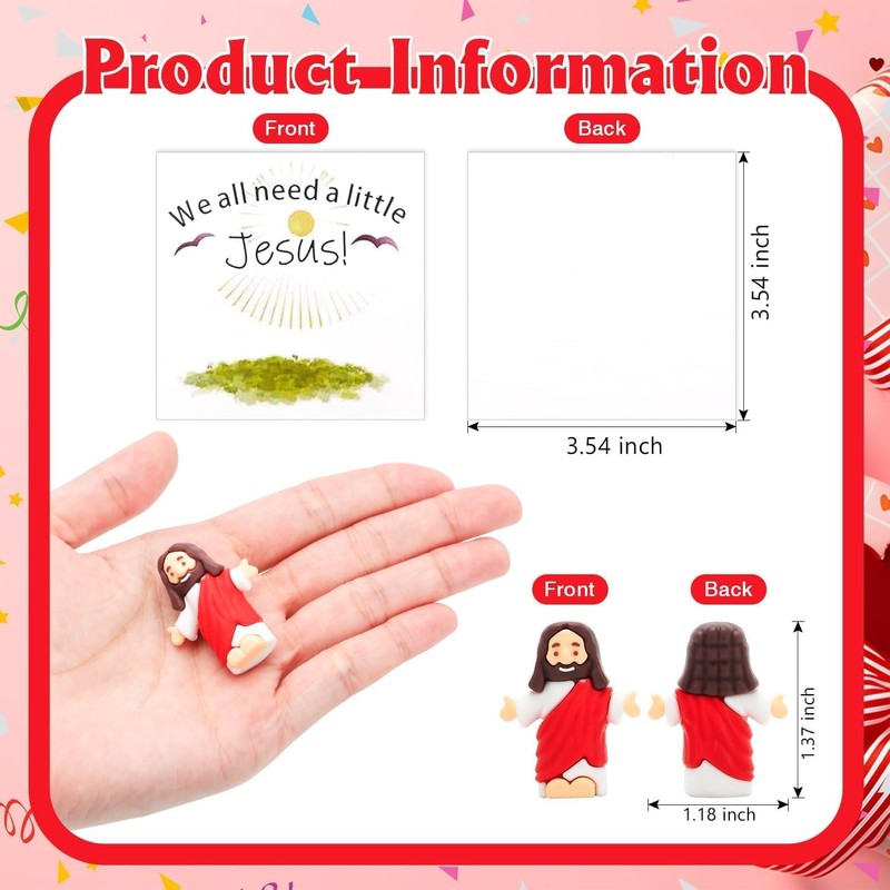 - Little Jesus Figures: This set includes 1 mini Jesus figure, each measuring 3.5cm x 3cm, in a vibrant red color.
