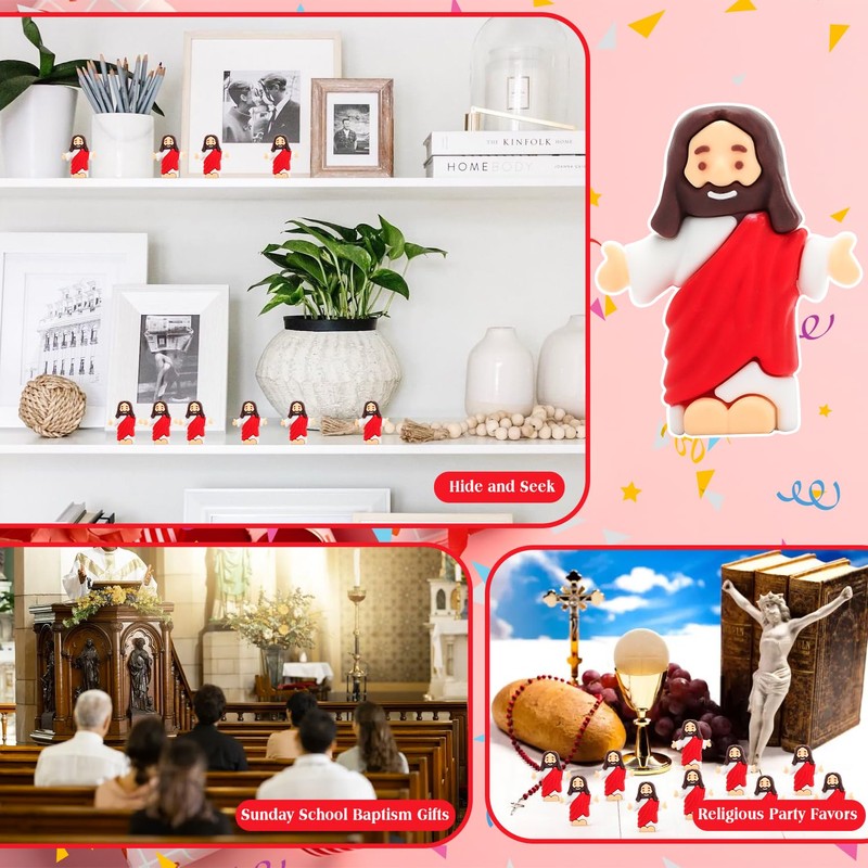 KAZIPA Mini Jesus Figures with Greeting Card, Pocket Figures, Easter Eggs,Tiny Mini Jesus Figurines Collection for Baptism Favors,First Communion Favors,Baptism Decorations(Red)