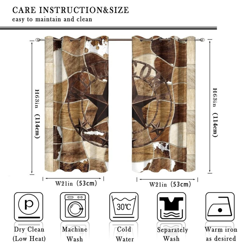 - ✔【Rustic Western Texas Star Art Grommet Blackout Curtain】The total size is: 42x45in.2 Panels, the size of each 2 Panels is: 21x45in .Natural Feeling. Breathable Fabric.