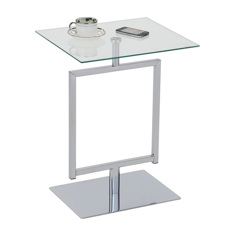 - This chrome finish and tempered glass end table, adds a touch of high quality, and brings a clean and contemporary style to your living space.