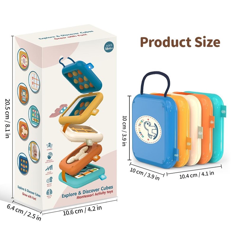 3. Our Montessori motor skills cube toy for babies is ideal for travel and excursions. This Montessori toy is compact and lightweight, easy to carry so they can have fun at any time.