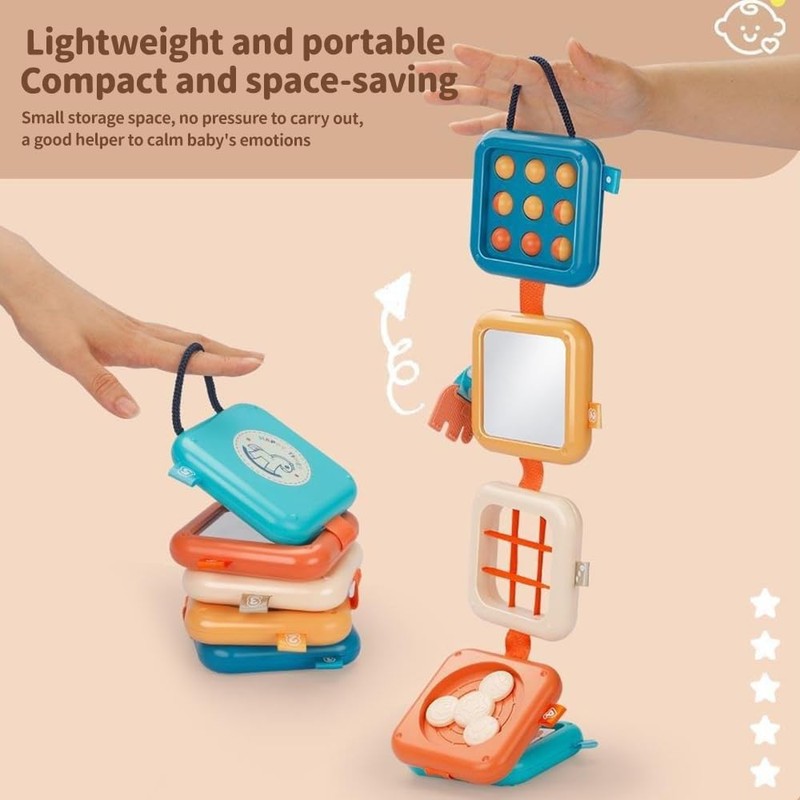 - Portable travel toy: Our busy activity cube for toddlers is specially designed for travel and excursions. This activity cube for toddlers can be folded for storage, the handles on both sides of the cube allow convenient transport, Montessori motor skills cube toy for babies is small and easy to carry and is therefore perfect for babies to play on the plane or car