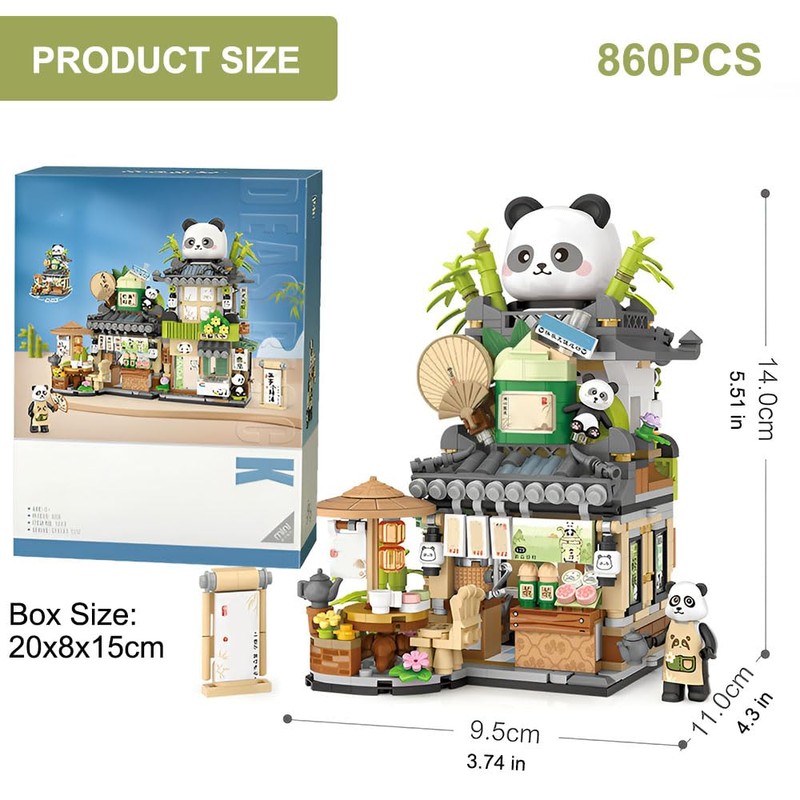 KBIBCK Panda House Mini Building Blocks, MOC Creative Japanese Toy Model Set 6-12 Age, 860 Pieces Building Blocks House Toy Gift, Home Decoration (Panda Tea House)
