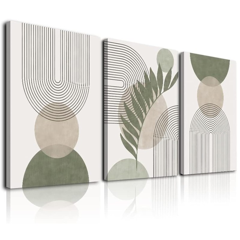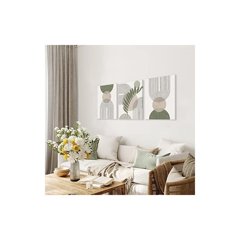 KBKBART Sage Green Boho Wall Art Set of 3 - Perfect for a variety of home styles, whether it's boho, mid-century modernminimal, or neutralHigh-quality Art Print The boho artwork is made of high quality canvas material and ink to ensure durability, waterproof and fade resistant.Premium Wooden FrameEach gicle print is stretched tightly over a wood sub-frame, ensuring the canvas is stretched and does not buckle.Brighten Up Your Home SpaceEach artwork pattern is carefully designed and exudes a strong modern Bohemian style. The minimalist boho art work will instill a sense of calm into your home.Applicable scenesWall decor for living room, bedroom, kitchen, dressing decor, art room wall, galleryGift choice for Housewarming, Valentine's Day, Thanksgiving's Day, Christmas, Birthday, Father's Day, Mother's Day, Anniversary