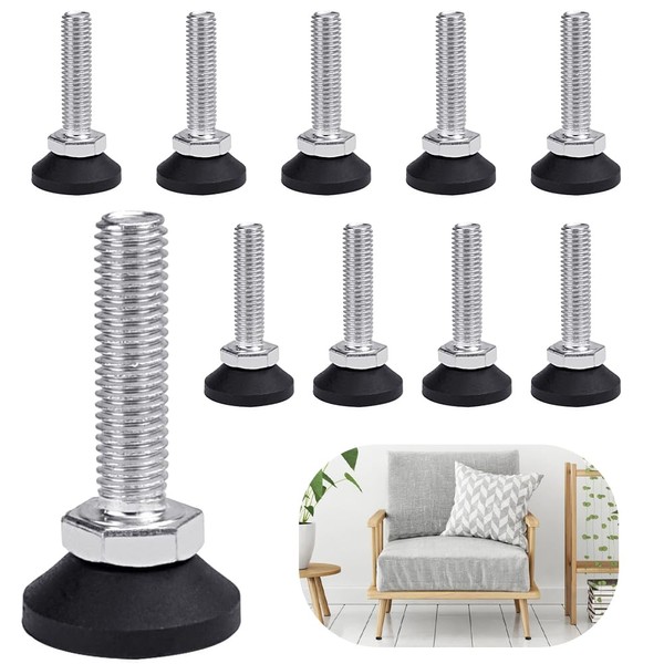 - PROFESSIONAL FURNITURE ACCESSORIES - 10 Height Adjustable Screws (M8) for Office or Home Furniture and Industrial Machinery with Threaded Widely used in most types of furniture such as TV cabinets, sofas, chairs, tables, cabinets, desks, etc.