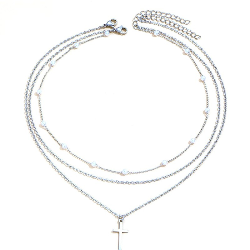 - ELEGANT DESIGN Our women's necklace features a refined multi-layer design decorated with sparkling pearls and an elegant cross pendant. This combination gives your look a timeless elegance and is a stylish highlight for both everyday and special occasions.