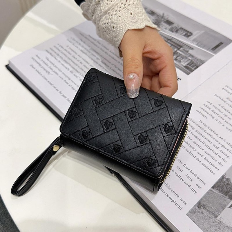 • Simple and fashionable: this short wallet is a simple and exquisite wallet, exquisite and beautiful love heart embroidery print with the same colour lanyard, free your hands, with zip and snap closure, it is a comfortable and practical women's wallet.