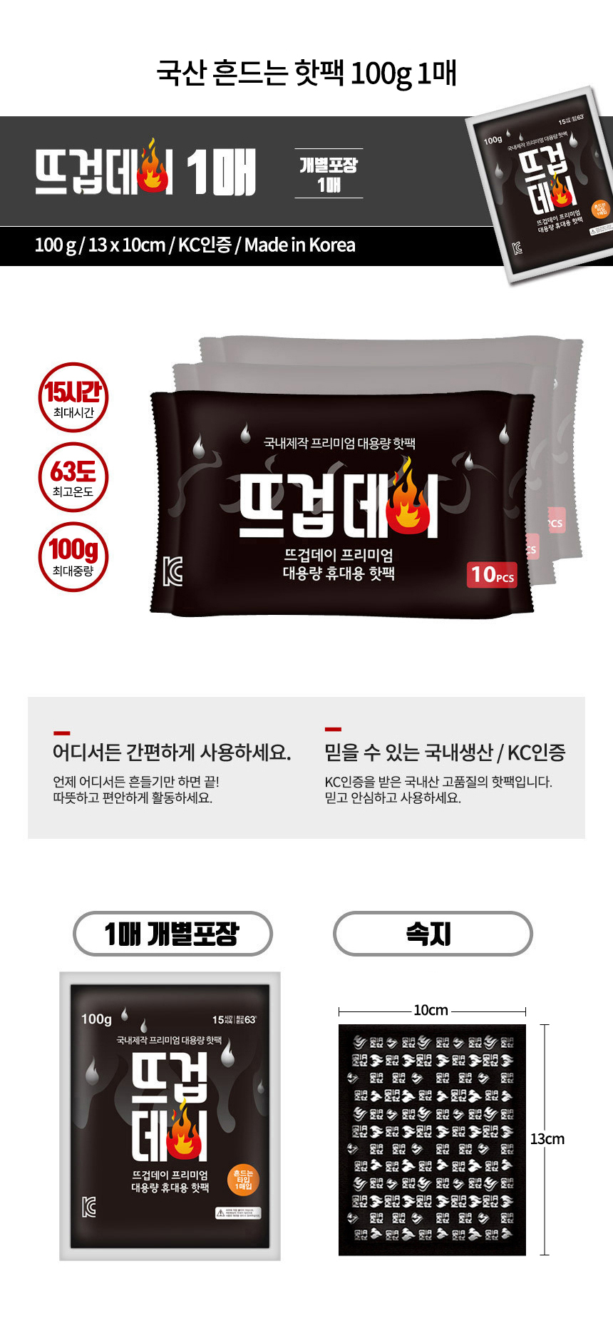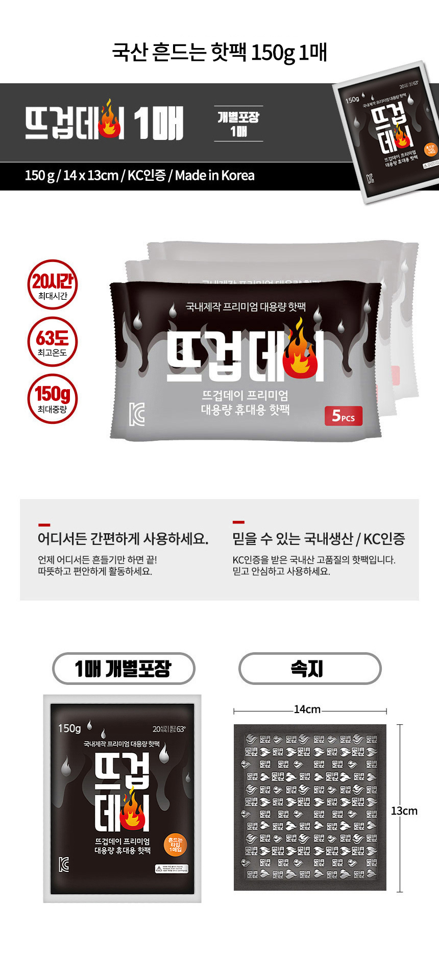 KC Certified Hot Day Domestic Large Capacity Shaking Attachable Mini Hot Pack 03. Shaking hot pack 45g 20ea