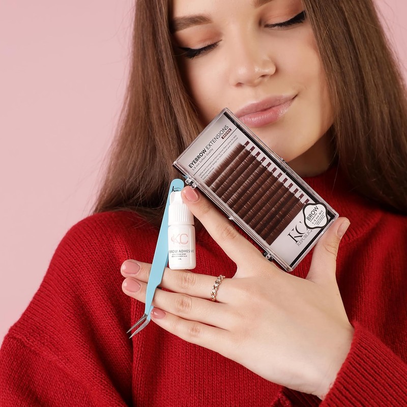 KC Republic Eyebrow Extensions Kit with 4 Trays of Mink Eyebrows in Light Brown, 2 Brown, Black, Comes on Mixed Length Trays 5-8 Mm Mix, Eyebrow Extension Glue & Extension Tweezers