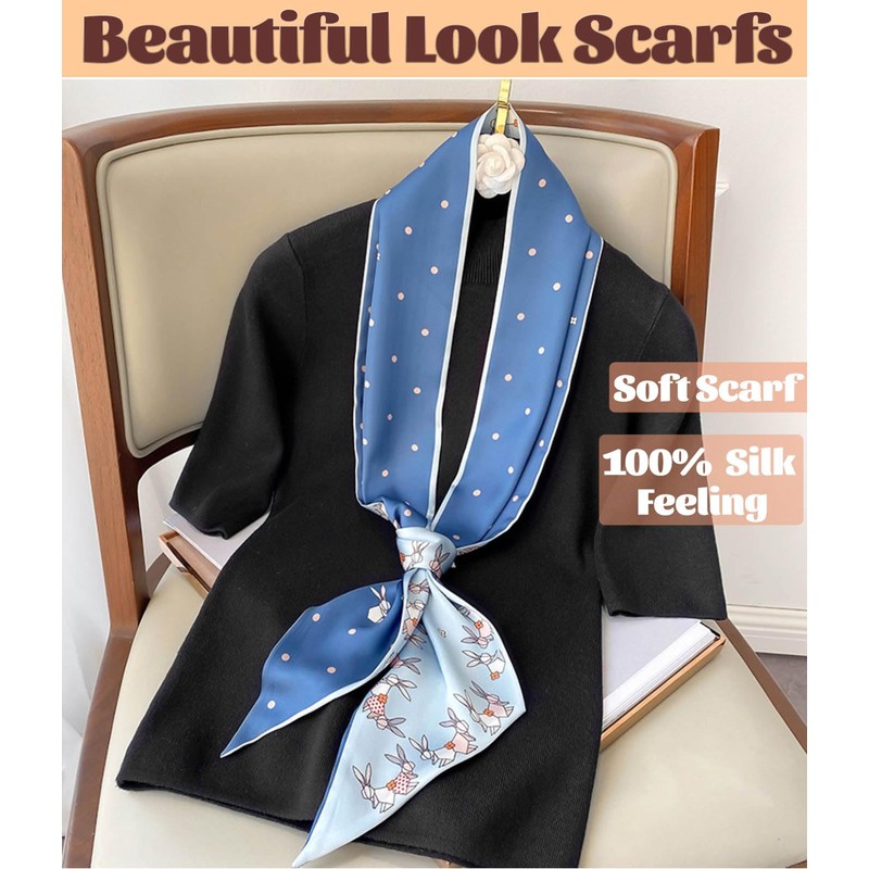 Kcctoo Bufanda de seda de morera de 27.5 pulgadas para mujer, bufanda de satén con cuello cuadrado para bolsa, bufandas de pelo, regalo, I15 Azul / Conejo 59 x 5.9 pulgadas, 59” x 5.9”/150 x 15cm