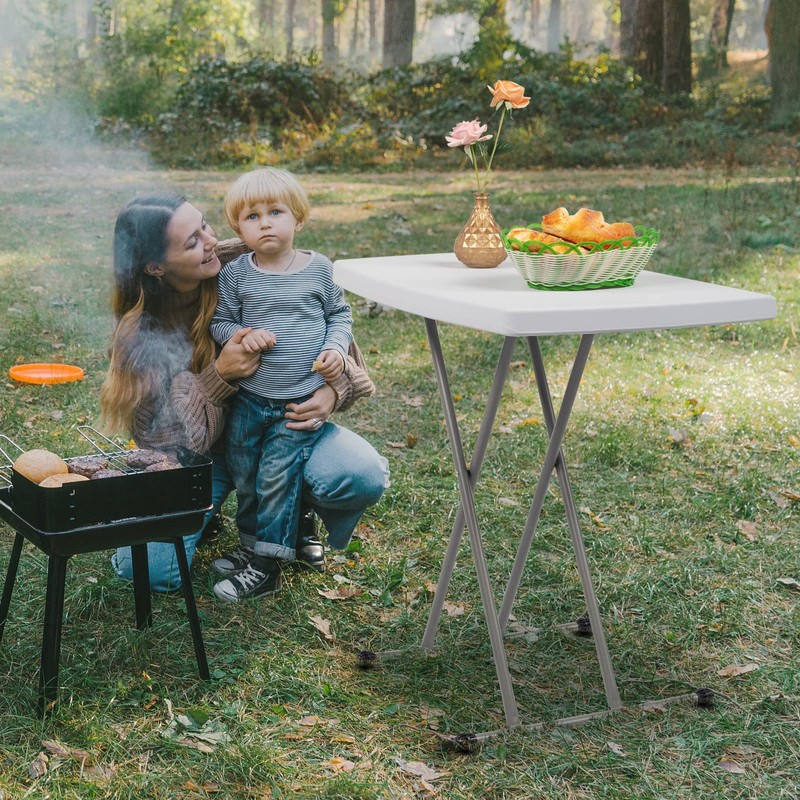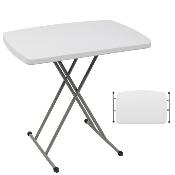 Kcelarec White Adjustable Folding Table, HDPE, 30 x 19.7 x 28 inches, 9.04 lbs, Outdoor Use, Modern Tray Design, 55 lbs Load Capacity