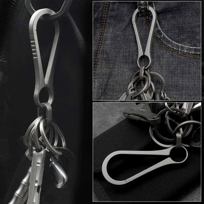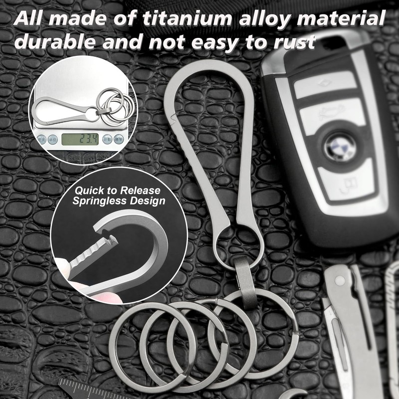 • [Super Durable]: Titanium has great toughness and is different from traditional torsion springs. The overall structure of this keychain hook is more durable. You don't have to worry about the keys falling off when opening the carabiner.