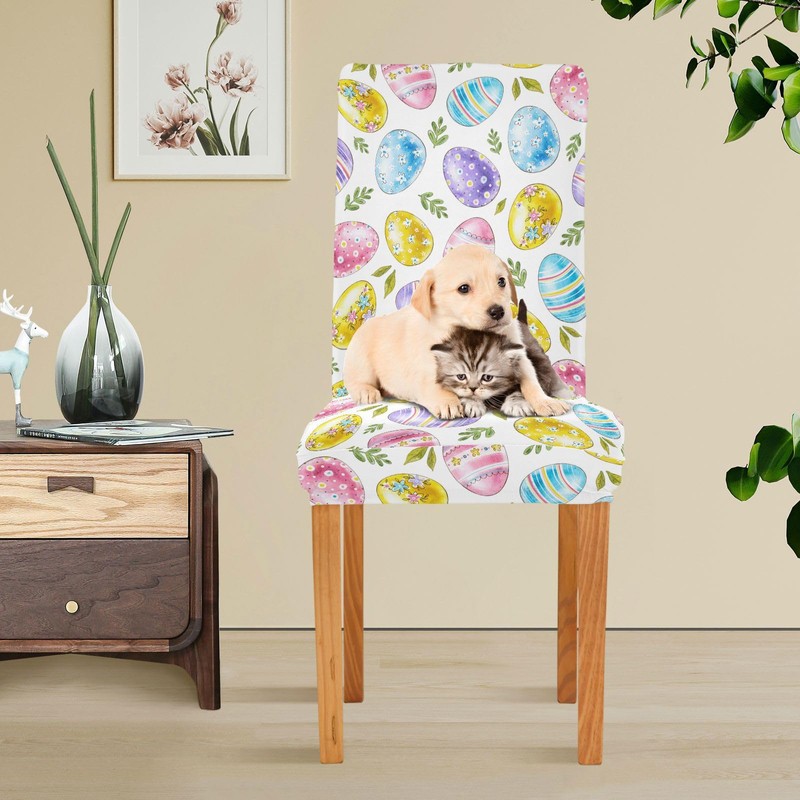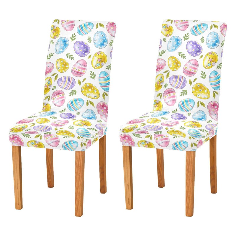 Kcldeci Easter and Green Leaves Spandex Chair Covers for Dining Room Set of 4, Stretch Printed Chair Protectors Covers, Removable and Washable,