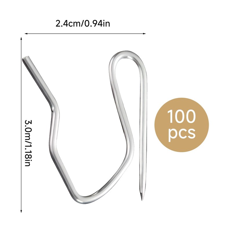 - [Easy To Use] Each pack includes 100 individual curtainpin hooks, offering excellent value whether you're outfitting a single room or an entire home. They are easy to insert and remove, making curtain changes simple and hassle-free. Designed for reuse, they retain shape and sharpness over time. Whether you’re redecorating, renovating, or installing new drapes, this reliable set of metal curtain hooks gives you everything you need for a polished final look.