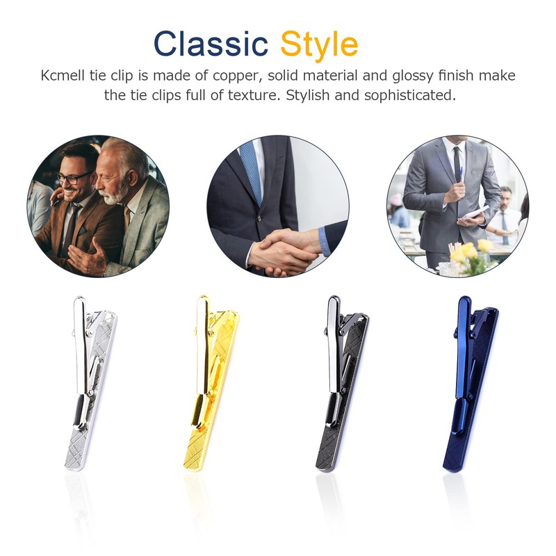 - 【Unique Design】Kcmell tie clips for men are made of premium copper material, exquisite polished plating process enables the tie clip to maintain color for a long time, durable and nice. The spring structure and flexible clip design of the tie bar clip make it strong and stable, sensitive spring tension prevents damage to your expensive fabrics.