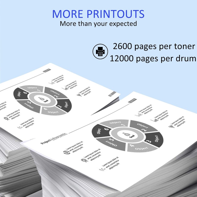 • Page Yield : 2600 pages per TN660 black toner cartridge / 12000 pages per DR630 drum unit at 5% coverage
