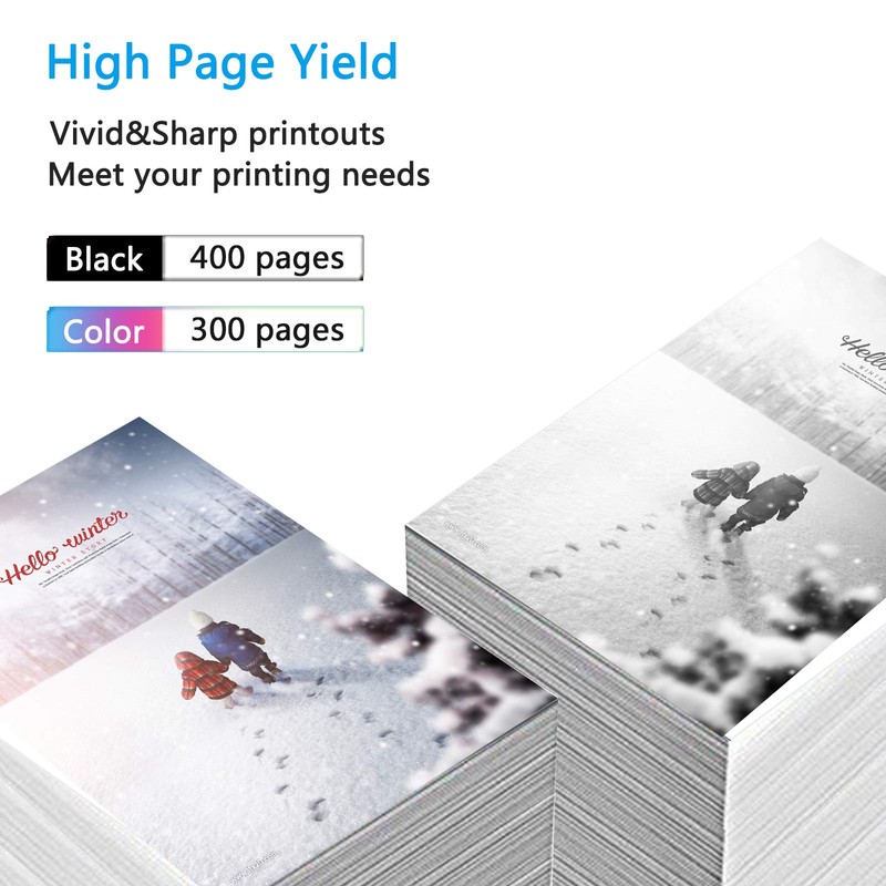 - Equal Quality, Lower Cost: Our ink cartridges deliver sharp text and vivid colors, matching OEM standards. Meanwhile, they cut printing costs by up to 50%. Black Cartridge: 400 pages* Color Cartridge: 300 pages* Fewer cartridge replacements enhance daily printing efficiency. (Page yields are based on ISO/IEC 24712 standards with 5% page coverage. Actual results may vary.)