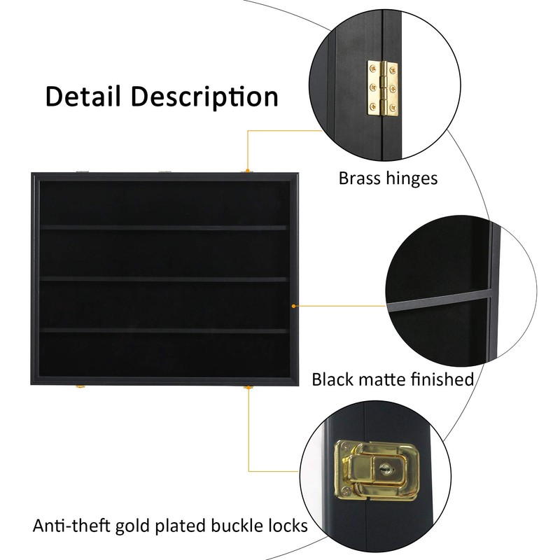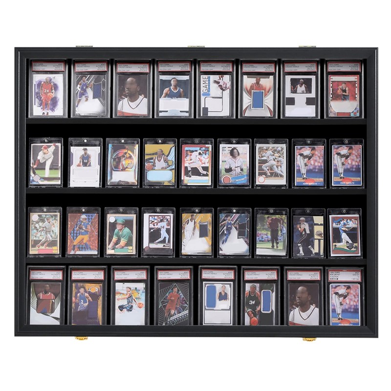 - 【Sturdy Storage Design】 Cards cabinet lockable with black matte finished give a clear view of your collectible cards. Shatter Proof 92% transparency and 98% UV protection acrylic ensures your cards collectibles away from fading yellow because of overexposure in light. 2 gold plated anti-theft locks can protect your cherished sports cards memorabilia or collectibles from lost well.
