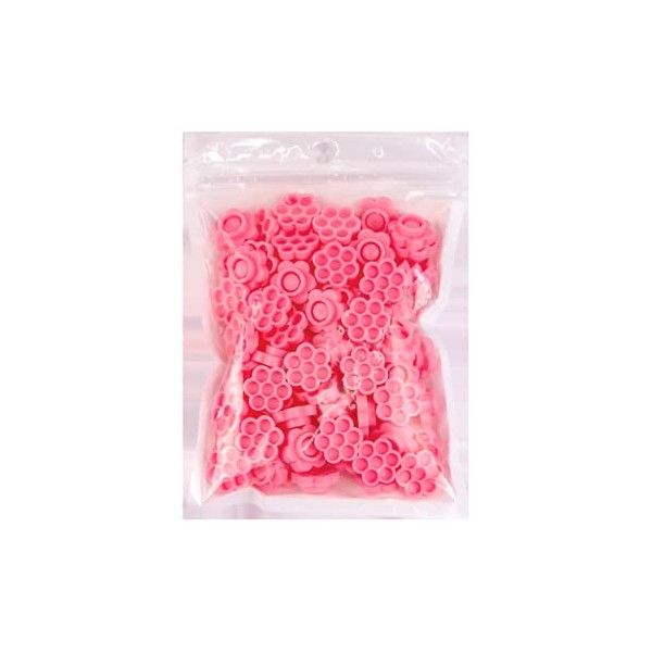 KDDOM 100 Pcs Eyelash Extension Glue Holder Eyelash Glue Cup Flower Shape Glue Cup Tattoo Ink Cup(Pink)