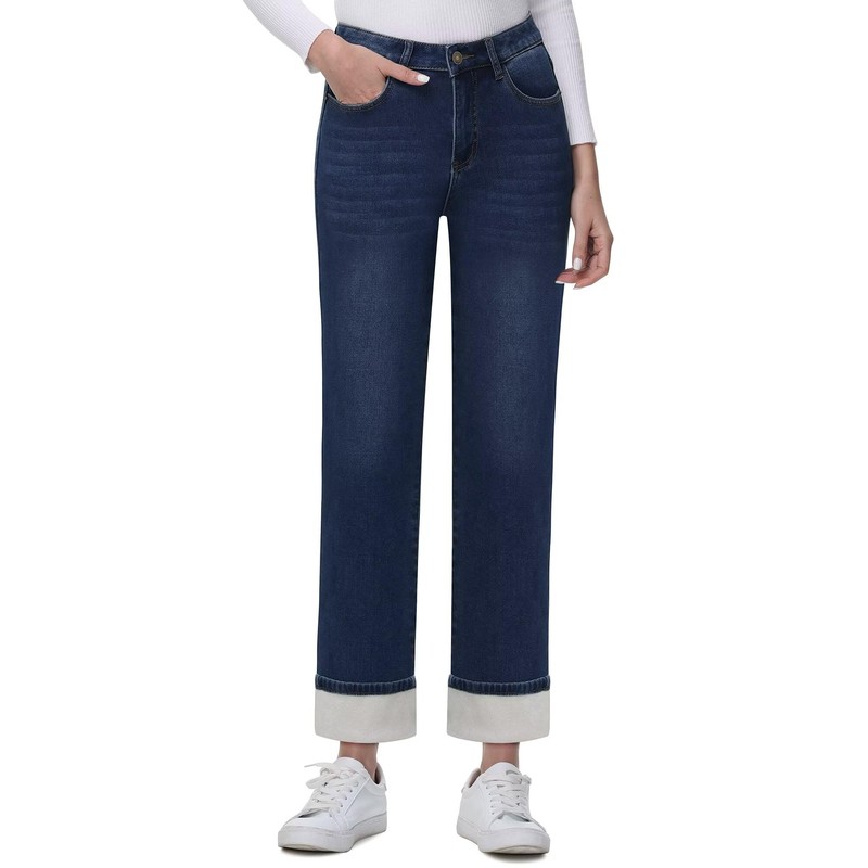 - Straight Leg Fleece Lined Jeans warm and comfortable: Fleece lined jeans women are made of warm fleece lining, comfortable to wear, classic straight leg jeans with a high rise, super elastic, warm, fine and thick, while keeping the body warm without adding extra bulk, flannel-lined design brings added warmth for chilly days outdoors