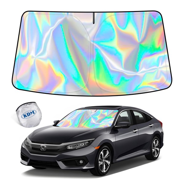 KDM Laser Silver Style Windshield Sun Shade Fit for 2016-2021 Honda Civic,Foldable Front Reflective Windows Sunshade Visor Protector Blocks UV Rays Heat