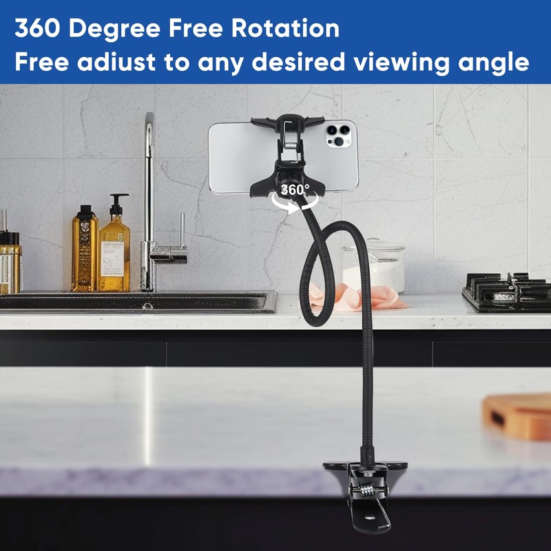 - Friendly For Use:With this the flexible gooseneck bracket, your hands can freely do anything, perfect for reading e-books, watching videos, bedrooms, video calls, kitchens, recording videos, gyms, offices, or anywhere else.
