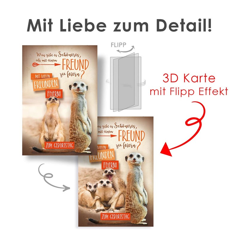 KE - Exclusive 3D Folding Card for Birthday, DIN B6 Format, Includes Envelope, Unique Meerkat Motif, Perfect as a Special Birthday Card