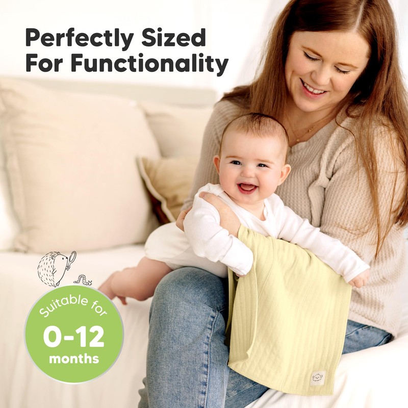 Indulge in the buttery softness of KeaBabies Shea (Stria) Baby Burp Cloths for boys, girls. Made from durable, non-shrink organic cotton burp cloths for babies with unique textured fabric, providing a calming sensory touch. This large 20" x 12" size, thick burp cloths for baby , made in dual-layers offer double protection & fast absorption, keeping your baby's delicate skin clean and dry.