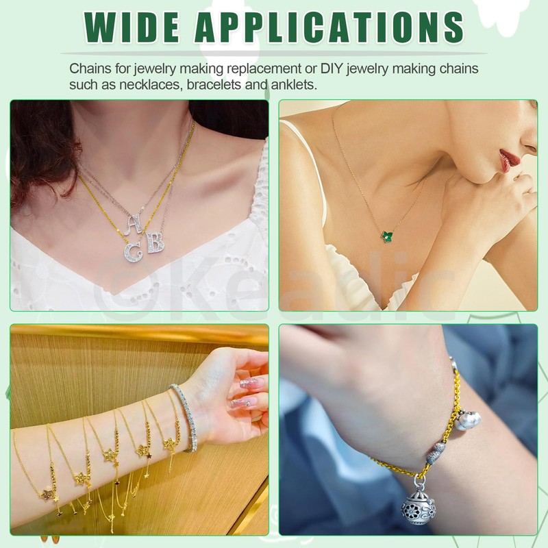 - Wide application: the jewellery making kit is ideal for making necklaces, layered choker necklaces, tassel chain drop dangle earrings, bracelets, anklets, body chain jewellery, necklace extender bracelet extender chain and more. You can use them with a variety of pendants, dog tags, acrylic European beads, rhinestone spacer beads, crystal glass beads, gemstones and more.