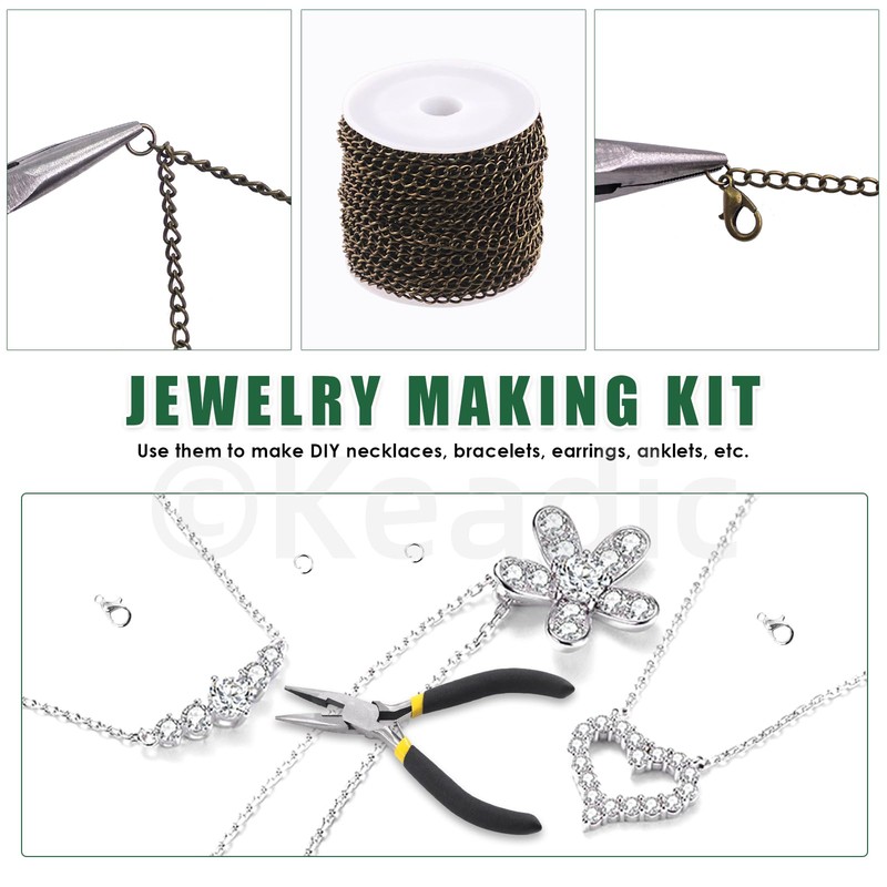 - 【Easy to Use】 The 30 feet chain is neatly rolled on a spool, effectively avoiding tangles and knots. When not in use, simply roll it back onto the spool for easy access. Our jewelry pliers is teeth design, which can prevent them from slipping when you attach the jump rings, making the attachment process more efficient. The jewelry pliers are spring-loaded for effortless use.