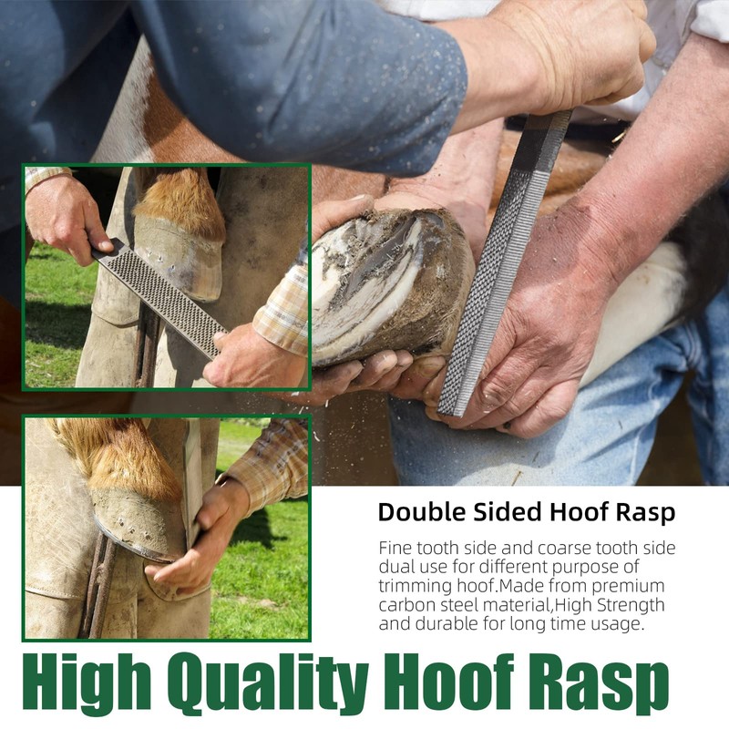- 【Double-sided Horseshoe Files】 The fine side is used to sand away excess keratin and nails, while the rough side is used to sharpen thick nails quickly. Compared with traditional style rasp, our files with improved accurate edges is sharp and aggressive so that it remove the substantial hoof efficiently. Warm Note: Pls install the handle on the rasp before using.Hit it with the hard object to tighten it to prevent it from falling off during work.