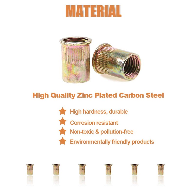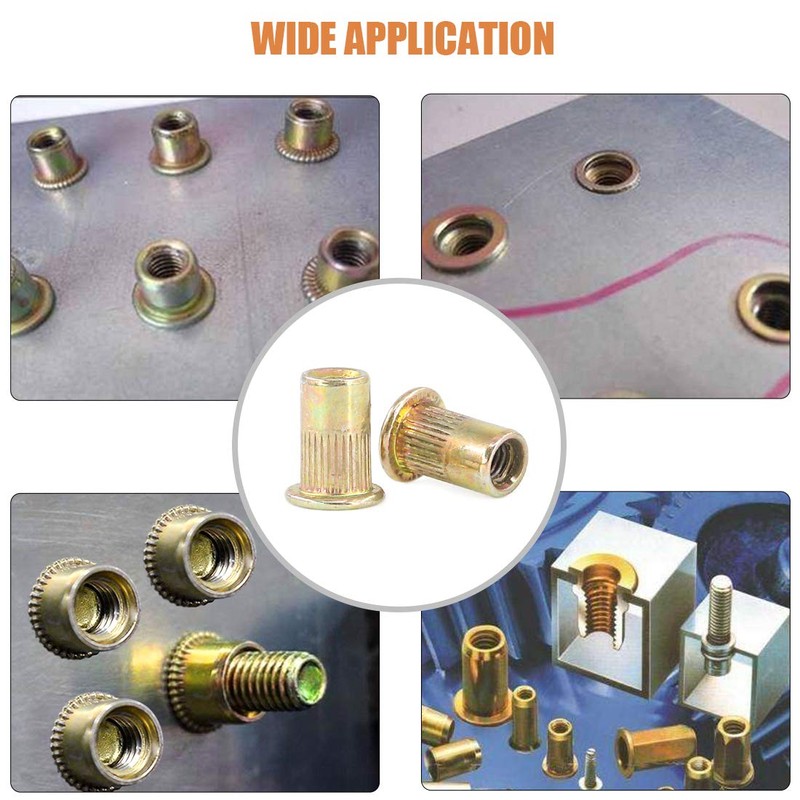 - REASONABLE DESIGN: Our rivet nuts are knurled having flat and deep thread, which are easy to fix and anti-slip effective. Besides, you will appreciate their appearance with even pitch and smooth surface without burrs:)