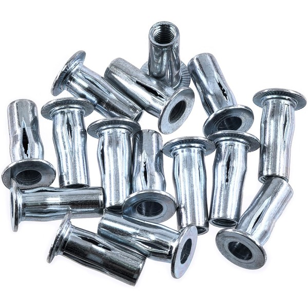 - 【Easy to Use】Our rivet nuts are very easy to use, simply commence by drilling a hole of the appropriate size, then effortlessly insert the jack nut using a designated tool to draw the bolt, causing it to expand and securely grip the substrate. The enlarged head of the nut ensures a solid attachment to the plate, boasting load-bearing capabilities for reliable performance.
